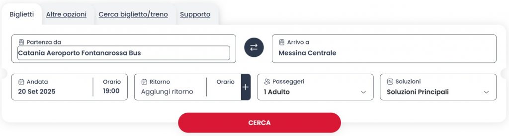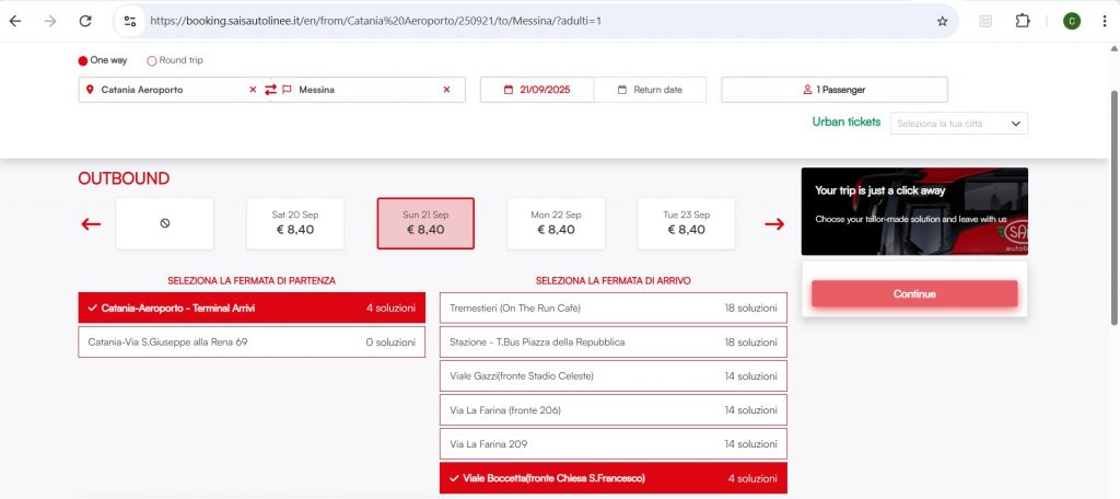When booking the ticket, after the first selection as below (from Catania Aeroporto to Messina)